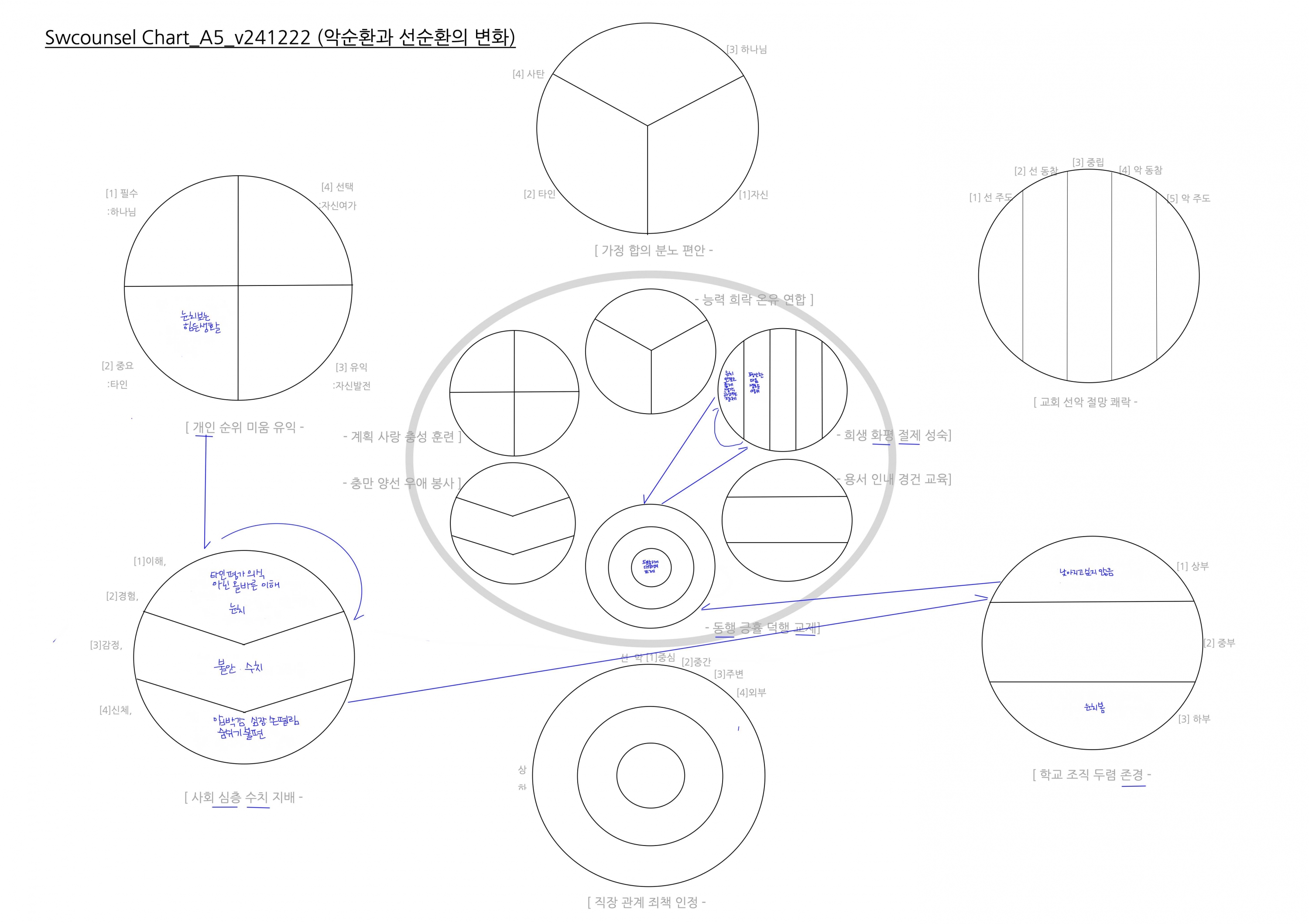 [조현병] 4-9) 고1 여, 실습 / 조현병 -> 이해력![]() ![]() ![]() ![]() ![]() ![]() III. 상담방법 1) 사랑하라: 학교에서 겪는 불편한 일을 어떻게 대처해야 할지 몰라서 힘들어 하고 있지만 이러한 증상이 무슨 병인지 알려고 하는 것은 앞으로 새로운 삶의 변화를 도전할 수 있는 힘이 있는 것이라고 격려하며 마음으로 들어간다. 2) 이해하라: 어렸을 때 눈치를 많이 보게 된 어떤 사건이 있었는지 그리고 학교에서 친구들이 비웃는 것 같고 자신을 싫어하는 것 같다고 생각하게 된 일에 대해서 이해되지 않은 어떤 상황이 있었는지 들어보며 더 깊이 대화한다. 3) 말하라: 학교에서 겪은 불편한 일 때문에 수치의 감정을 갖는 것은 존경의 욕구로 인해서 발생했음을 깨닫도록 말하고 이 문제를 해결할 수 있도록 삶 가운데 있어온 동행의 은혜를 소원하도록 안내한다 4) 행하라: 동행의 은혜를 생각하면서 관계에서 더 이상 눈치 보지 않는 절제를 실천함으로써 불편한 문제들을 새롭게 대처할 수 있음을 강조하며 그런 삶을 살수 있도록 돕는다. 5) 확장하라: 자신의 삶에 하나님의 동행이 있음을 생각하면서 학교에서 겪는 일 때문에 수치스러워하는 것으로부터 관계에 있어서 타인의 눈치를 보지 않는 절제를 실천함으로써 교제할 수 있는 관계로 나아갈 수 있음을 생각 할 수 있게 한다. 6) 통찰하라: 커져버린 수치감의 원인은 문제를 해결하기 보다는 밖에서 자신을 어떻게 대할지에 대한 걱정으로 혼자서 생각하고 오해했기 때문이며 이러한 존경을 추구하려는 욕구를 동행의 마음으로 바꿔야 함을 깨닫게 한다. IV. 문제유형 6. 심층유형 1) 이해: 학교에서 친구들이 나를 비웃으며 뒷담화 하고 싫어 하는 것 같아서 말도 잘 못하고 눈치만 보는 불편한 상황을 겪고 있는데 나만의 생각으로 다른 사람이 나를 어떻게 평가할 것인지 오해하며 힘들어하는 것이 아니라 문제에 대해서 올바른 이해가 필요 했다. 2) 사건: 올바로 이해하지 못하니까 눈치만 보며 점점 더 힘들어진 상황이다. 3) 감정: 답답하고 불안하며 힘들다. 4) 신체: 갑작스러운 압박감으로 심장이 빨리 뛰고 손이 떨리고 숨 쉬기가 불편하다.