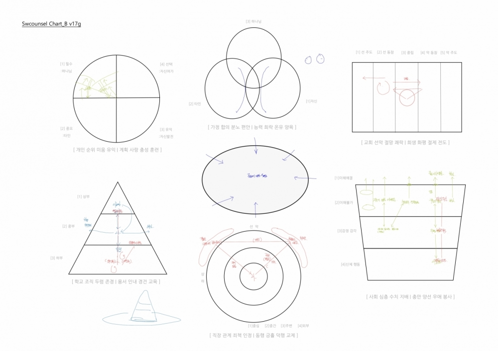 신형상담학교 상담질문지 v9c ________________________________________________ |C4사역| |F4사명감당| |G4책임상급| |L4실천사역| |C3성경공부| |F3성령충만| |G3은사인도| |L3은혜결심| |C2예배| |F2구원의확신| |G2죽음부활| |L2감정욕구| |C1전도| |F1하나님믿음| |G1창조심판| |L1영역분류| 1. [영역] 당신은 현재 어떤 분야의 일에 대해서 많이 괴로워하거나 노력하거나 생각하고 있습니까? [ 개인 가정 교회 학교 직장 사회 ] 2. [분류] 1번에서 답한 영역에 대해서 생각해 볼 때 그것은 어떤 분류에 해당한다고 생각하십니까? [ 순위 진로 선택 관계 조직 심층 ] 3. [감정] 2번에서 답한 분류에 해당하는 문제 속에서 당신이 느끼는 기분이나 감정은 어떤 것입니까? [ 미움 분노 절망 0두려움 죄책감 0수치심 ] -두려움: 형 -수치심: 선생님과 학생들 4. [욕구] 3번에서 답한 감정에 대해서 생각해 보면 당신이 그런 감정을 느끼는 이유는 무엇을 추구하기 때문일까요? [ 유익 편안 쾌락 인정 지배 존경 ] ___________________________________________________________________________ 5. [은혜] 4번에서 선택한 욕구를 버리고자 할 때에 당신은 하나님의 어떤 은혜가 필요하다고 생각하십니까? [ 계획 능력 희생 용서 충만 동행 ] 6. [결심] 5번에서 선택한 은혜를 통해서 생각해 볼 때 당신이 앞으로 정말로 이루기를 원하는 마음은 무엇인가요? [ 사랑 희락 화평 인내 긍휼 양선 ] 7. [실천] 6번에서 선택한 소원을 가지고 당신은 삶속에서 …