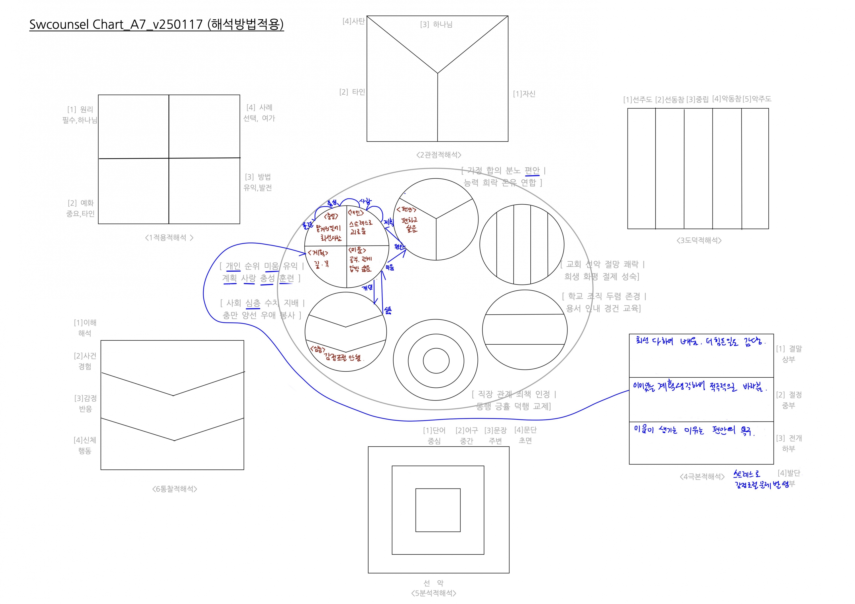 III. 상담방법 1. 사랑하라: (자녀와의 관계를 통해 오랫동안 지속된 부모님과의 안 좋은 마음을 새롭게 하시는 하나님의 뜻을 알려줌) 2. 이해하라: 상대방이 본인을 이해해주지 못하는 상황에서 화가나게 된 계기나 사건을 알아봄.3. 말하라: 관계에서의 일어나는 악순환에서 벗어나기 위해 존중받고 싶어하는 욕구를 버리기를 조언함. 4. 행하라: 하나님이 주신 은혜를 깨닫고 마음이 변화되어 상대방에게 말로써 좋은 영향을 끼칠 수 있도록 격려해 줌.5. 확장하라: (본인과 부모님의 문제를 해결하면 자녀와의 …