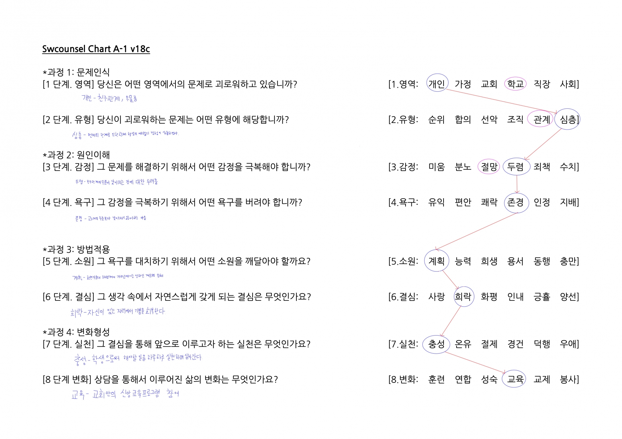 4) 행하라: 계획의 은혜를 생각하면서 직장에서 겪은 좋지 않은 일을 해결하기 위하여 자신이 할 수 있는 일을 실천할 때 새롭게 대처할 수 있음을 강조하며 그런 삶을 살도록 돕는다.