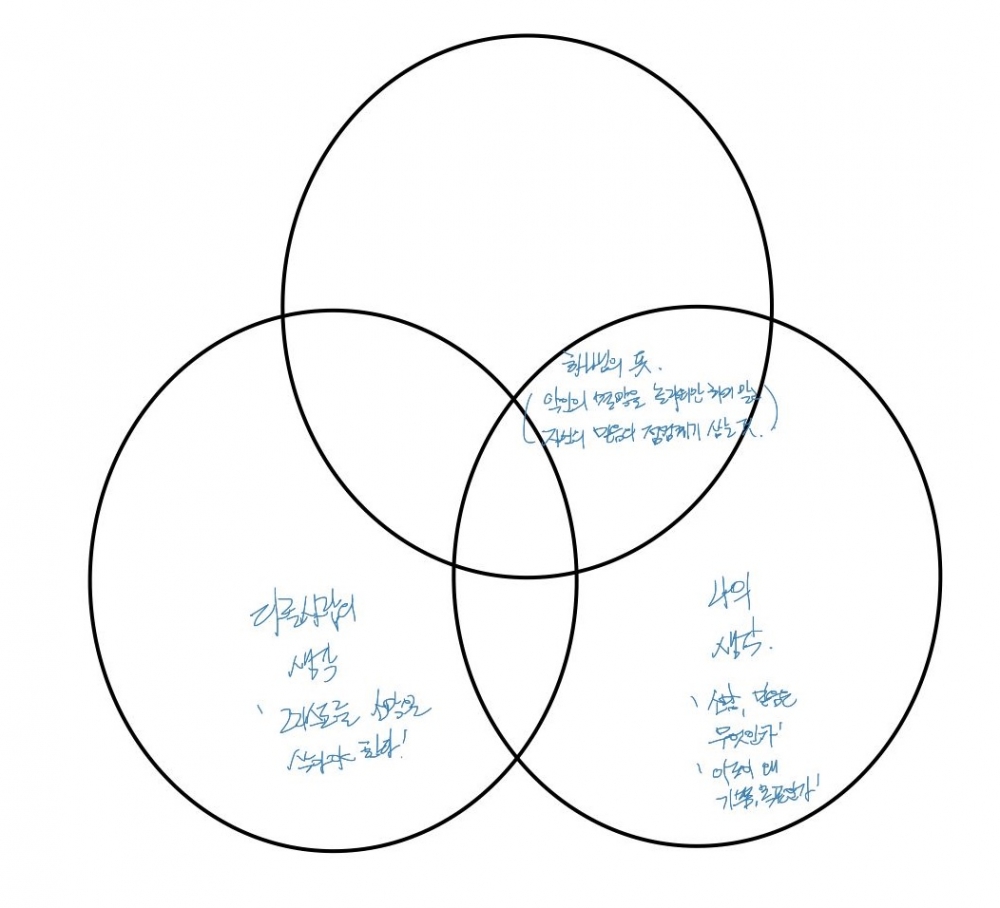 3]. 과정정리1. 문제인식: 직업에 대한 발전 등 적절한 때를 놓친 것 같고 직장에 대한 비전에 없는 등 미래가 잘 보이지 않는 것 같음.2. 원인이해: 선임자가 조언이나 이끌어준게 없다고 생각되어 미운데 이는 유익의 욕구 때문임.3. 방법적용: 하나님이 내게 주신 능력이 있음을 깨달아 이를 활용하고자 하는 마음을 가짐.4. 변화형성: (현재 맡은 일을 충실하게 해나가며 필요한 부분에 대해 교육을 받아 발전을 이룸.)