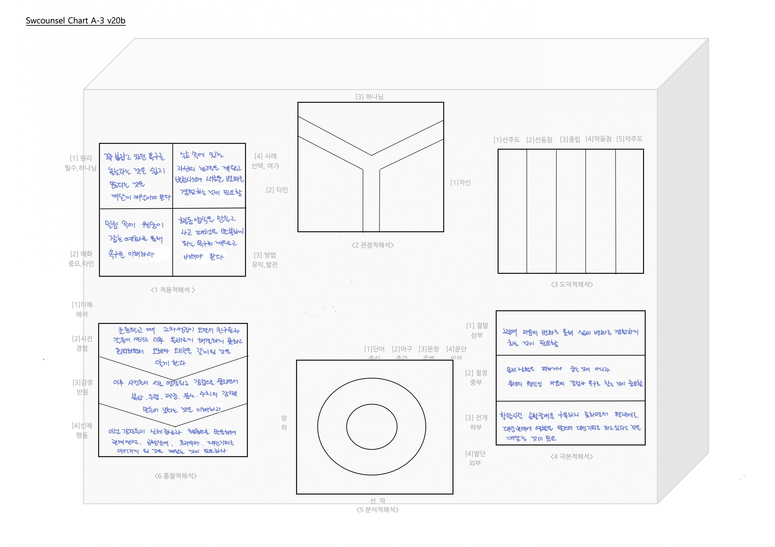 Swcounsel Chart_A0_v240418   연령:   0(영유 )  6(초)     12(중)     15(고)     18(성인)     30대     40대     50대     60대     70대     80대      [1단계 영역] 어떤 영역의 문제로 괴로워하고 있습니까?(문제인식)                       [개인  가정  신앙  학교  직장  사회]   학교 생활 부적응과 학업부진의 괴로움     [2단계 유형] 그 문제의 양상은 어떤 유형에 해당합니까?(문제인식)                        [순위  합의  선악  조직  관계  심층]   쌓여가는 열등감과 우울감으로 고통스런 학교 생활     [3단계 감정] 그 유형이 생기는 원인은 어떤 감정 때문입니까?(원인이해)           [미움  분…