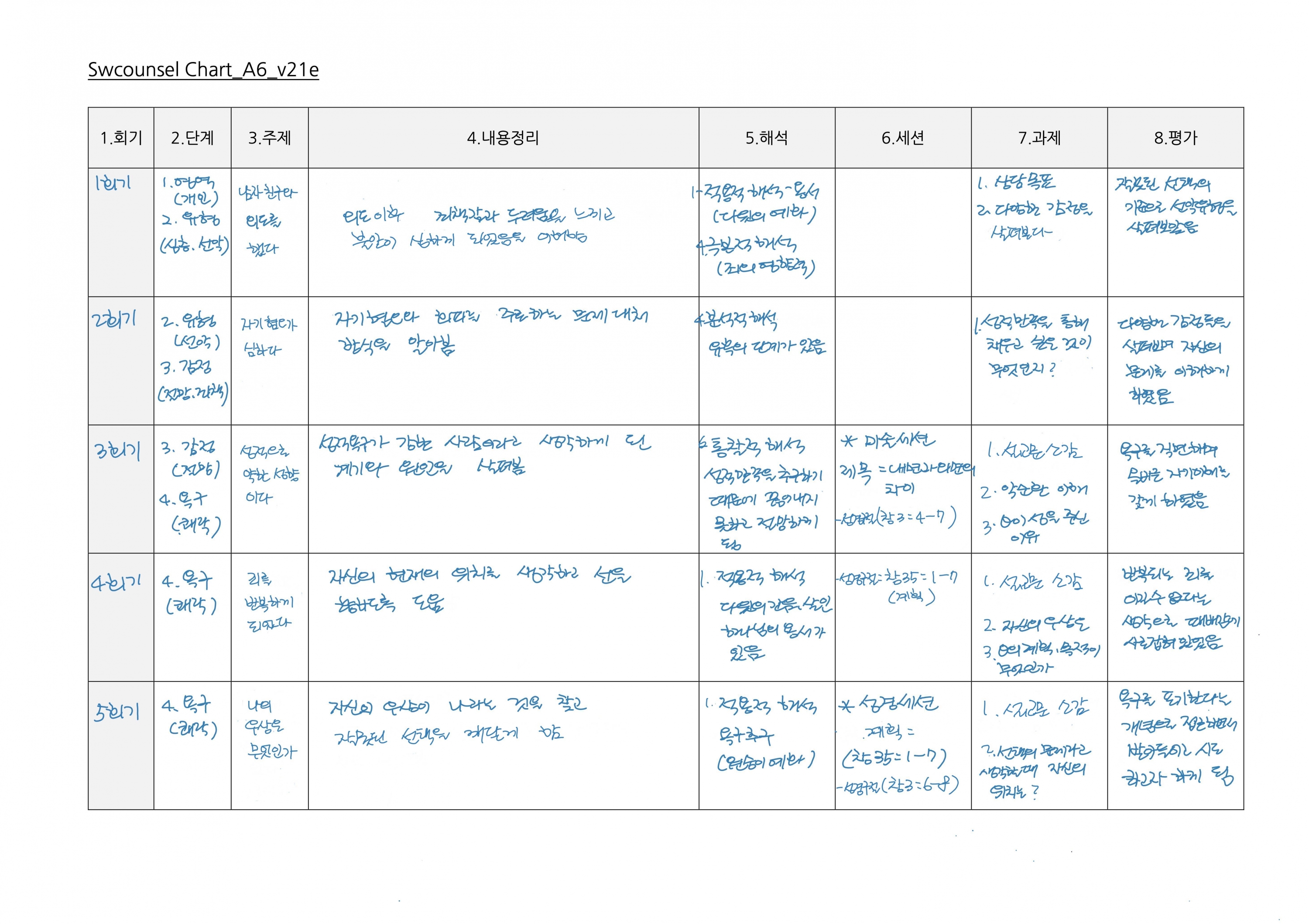 5. 상담계획: (존경의 욕구를 버리고 충만의 은혜를 깨닫게 함)