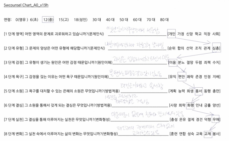 [1단계 영역] 어떤 영역의 문제로 괴로워하고 있습니까?(문제인식) [개인 가정 신앙 학교 직장 사회]