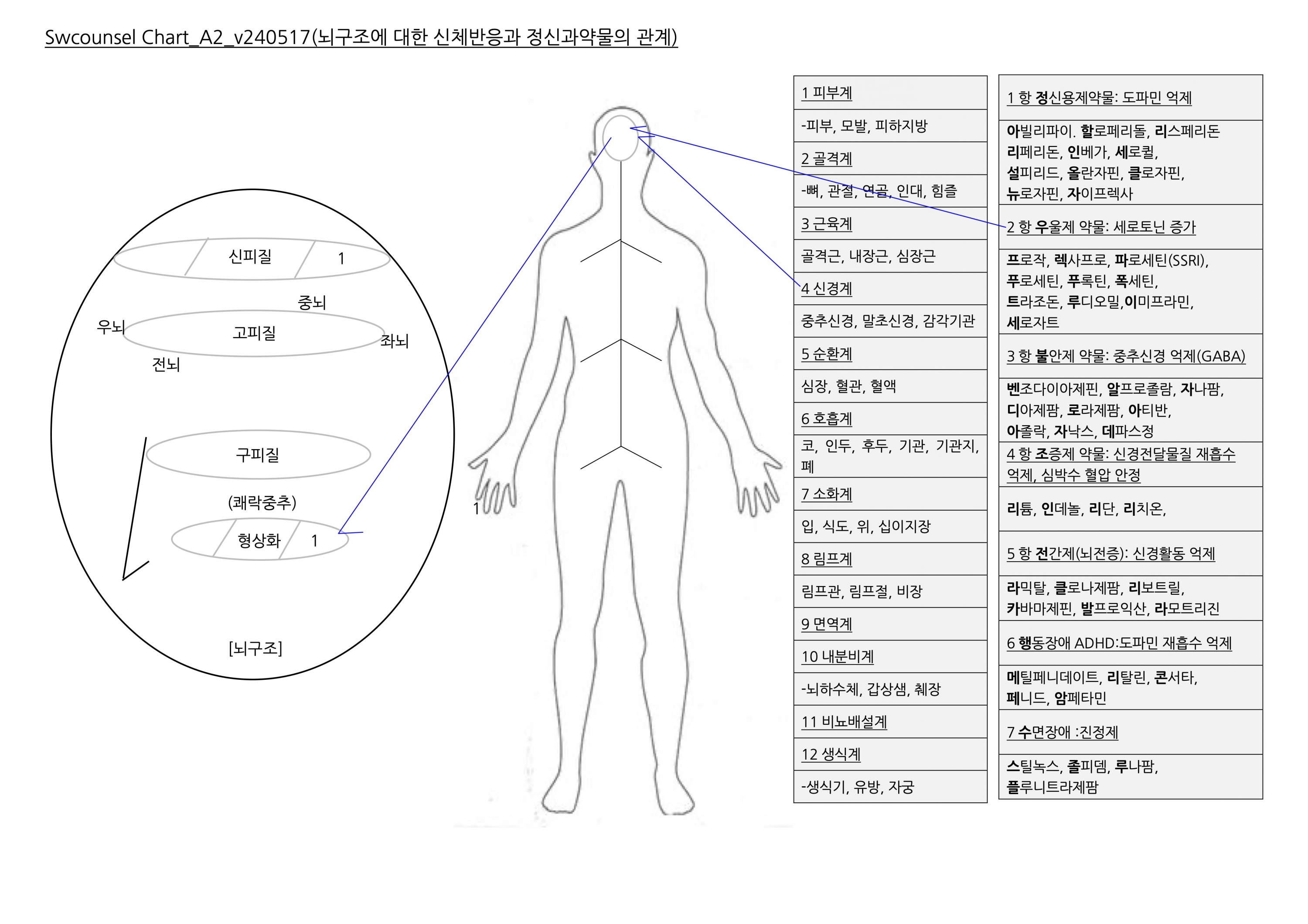 Change0: 전체변화과정챠트- 뇌구조에서 역동성까지 연결되는 마음의 변화과정에 대한 다섯 가지 접근법을 보여주는 상담챠트