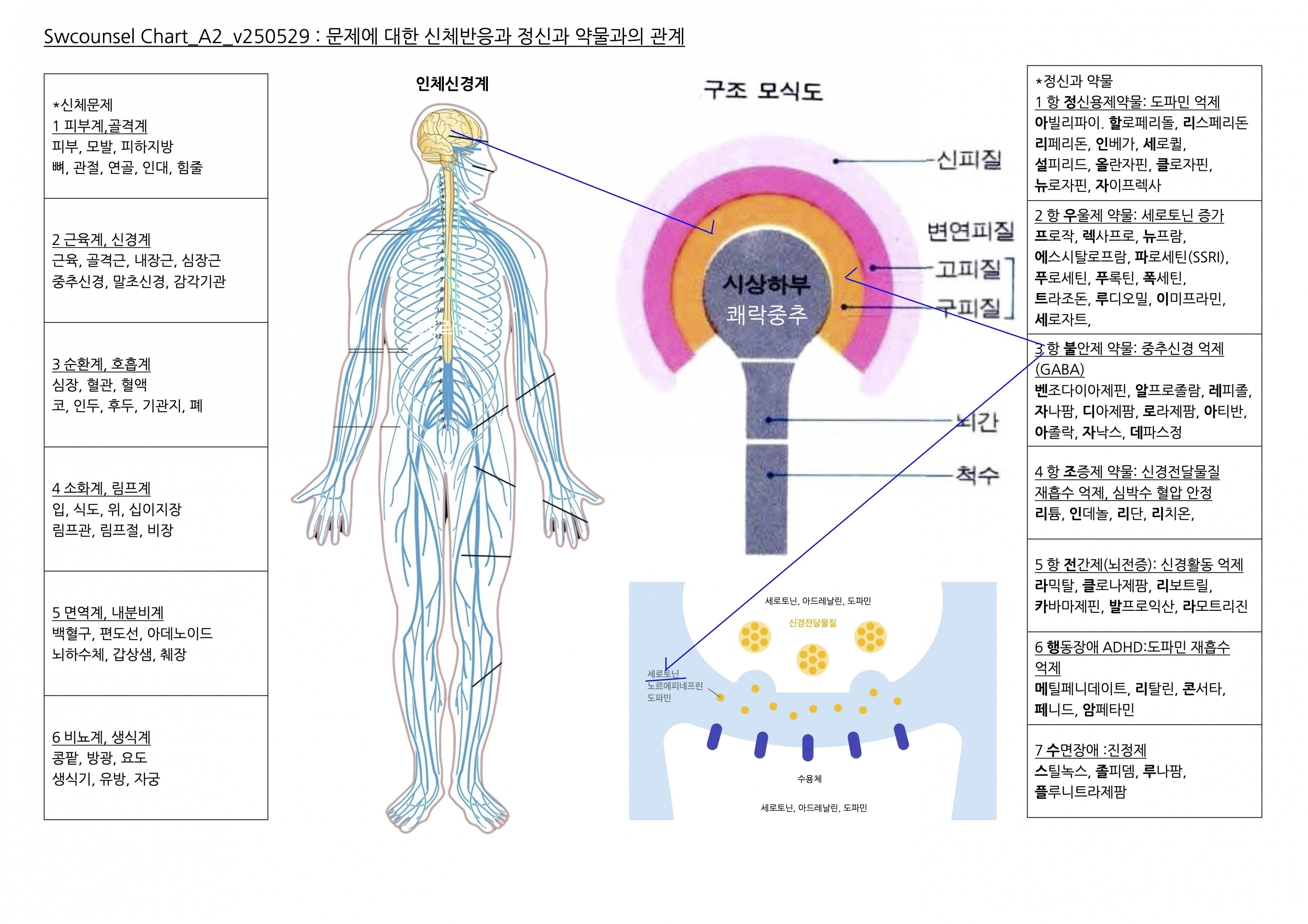 Change0: 전체변화과정챠트- 뇌구조에서 역동성까지 연결되는 마음의 변화과정에 대한 다섯 가지 접근법을 보여주는 상담챠트