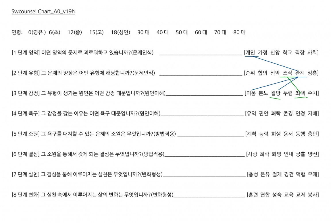 *과제 1 사례를 아무 것이나 하나 선택해서 8단계를 모두 챠트에 그려보기, (A1, 혹은 A4 챠트로 작성하기) => 상담챠트에 올리기 *계획 1. 다음 달 '챠트 작성을 통한 사례연구법'을 개설함,