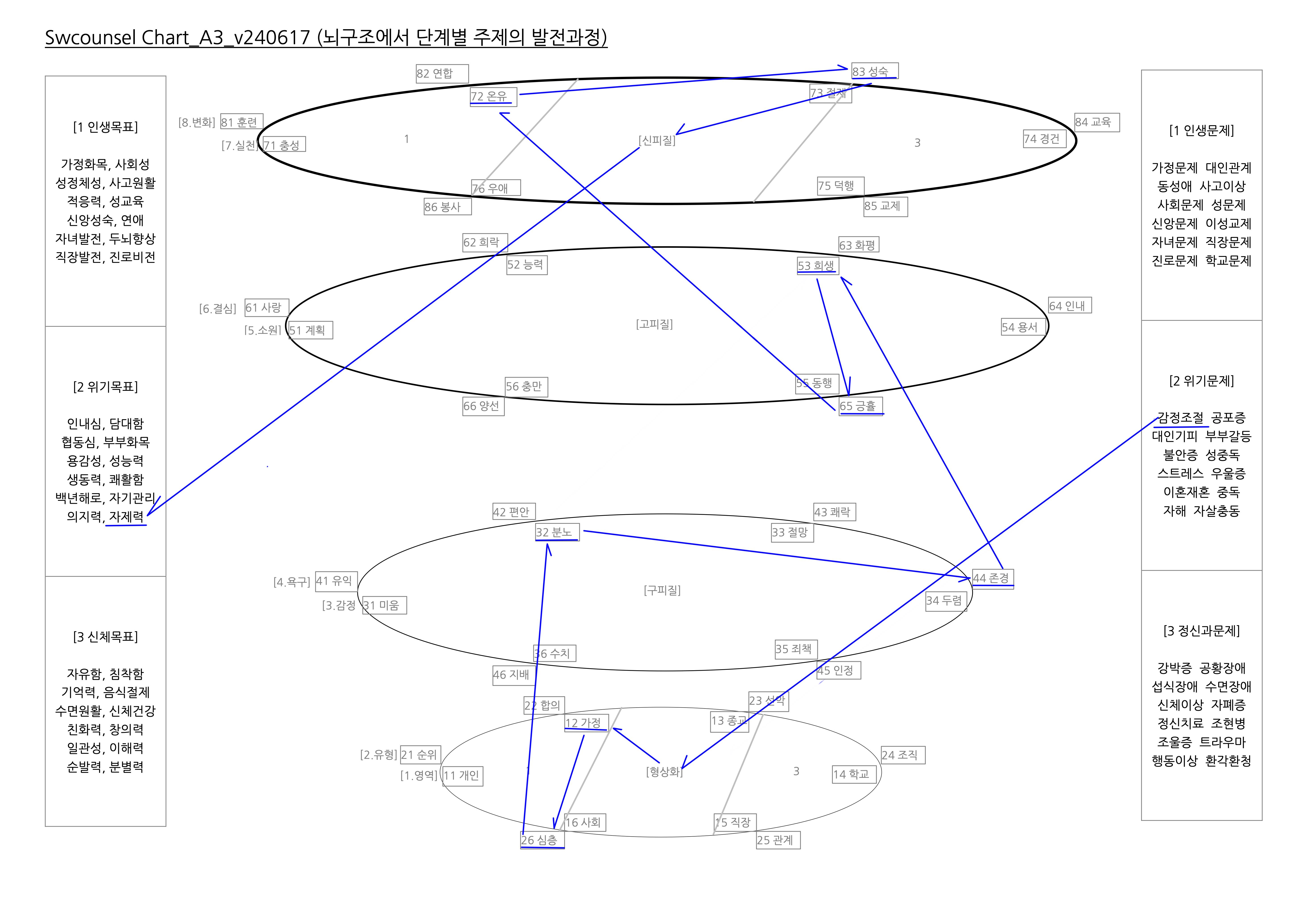 2]사례해석 1) 악순환: 가정에서 아버지가 심한말을 자신에게 했을 때 자신을 낮추는 말에 대해 견디지 못하게 하는 존경의 욕구로 인해 분노하게 되었다. 그 결과 욕을 하고 상대방에게 소리를 지를뿐만 아니라 칼을들고 싶은 마음까지 생기게 되었다. 그리고 다른 공적인 자리에서도 분노를 조절하지 못할것에 대한 염려가 생기게 되었다. 2) 선순환: (예수님의 희생을 생각 하여 남에게 희생하려는 적극적인 마음을 가지다 보니까) 아버지를 볼 때 불쌍한 마음을 갖게 되고 그런 시선으로 아버지를 볼 때 아버지가 심한말을 할지라도 온유하게 대응하게 되고 그렇게 성숙한 반응을 하다보니까 분노를 조절하여 발전된 삶을 살게 된다. 3) 진입구: 아버지에게 화를 내는 상황을 힘들어 하면서 다른 삶의 영역에서도 이성을 잃어 분노할까봐 걱정하는 마음이 있으니 그걸 이번에 해결 할 수 있다고 이야기 해준다. 4) 상담방향: 가정에서 아버지에게 이성을 잃고 분노했던 이유가 자신이 심한말을 들었을때 낮아지고 싶어하지 않는 존경의 욕구에서 비롯된 것임을 알게 해준다. 5) 상담계획: 존경의 욕구를 버리고 (예수님의 희생을 생각하여 남들에게 피해주지 않으려는 적극적인 마음을 가질때) 아버지를 불쌍히 여길 수 있게 되고 다시 심한말을 할지라도 온유하게 대처할 수 있게 된다. 6) 상담목표: (예수님의 희생을 생각하면서 남들을 위해 희생하려는 적극적인 마음을 가져서) 아버지를 불쌍히 여기며 앞으로 심한말을 할지라도 온유하게 대응하여 앞으로 계속 이렇게 성숙한 삶을 살아가게 한다.