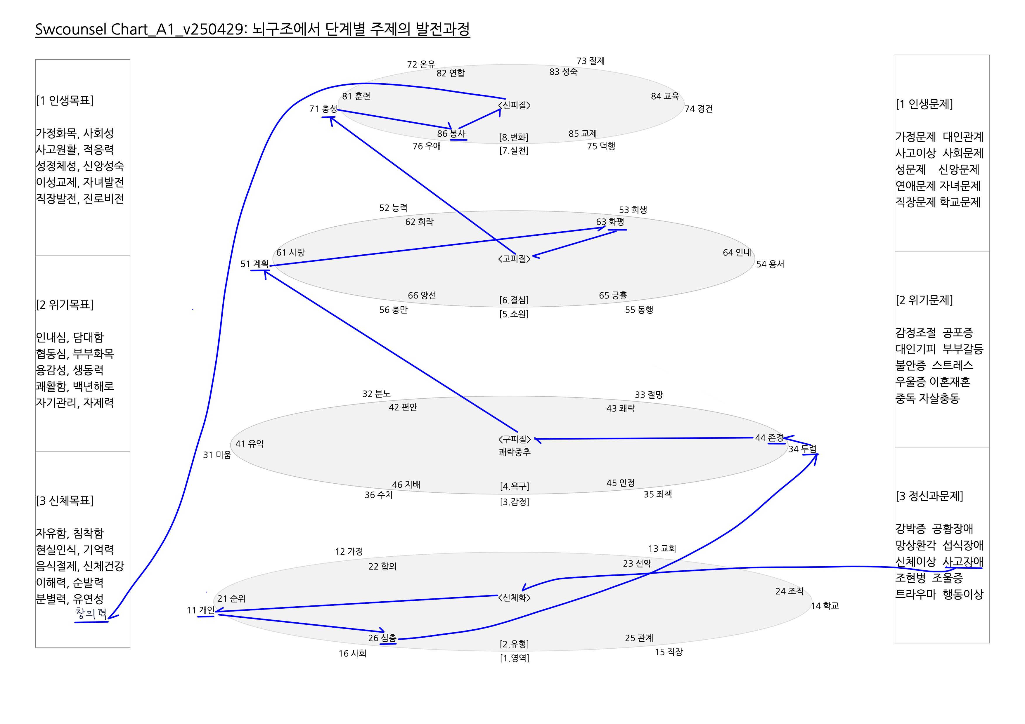 [사고장애] 사람들이 해코지할까봐 두려운 10대 / 사고장애 -> 창의력![]() #편집증, #사람들을 못 믿음, #사람들이 해코지할까봐 두려움, #망상 Ⅰ.상담과정 1.문제인식: 고민자는 사람들을 믿지 못하고 그들의 의도가 의심스러워 괴로운 상태인데 이렇게 의심하게 된 근원적인 이유에 대해서는 생각하지 않고 자신의 병명에만 초점을 두다보니 해결은 되지 않고 갈수록 비정상적인 사고는 심해져서 괴로운 상태이다. 2.원인이해: 사람들이 나를 해코지 할 것 같아 두려우면서도 갑자기 전지전능한 능력이 생겨 세상을 구하고 여성들이 나를 좋아해서 쳐다본다는 상상을 계속하는 것은 사람들 사이에서 특별한 능력으로 인정받고 싶은 존경의 욕구가 마음속 깊이 있기 때문이다. 3.방법적용: 사람들의 시선 속에서 매일의 현상을 해석하는 것이 아니라 이미 자신의 삶에 있어왔던 계획이 정말 중요했음을 인식하고 그것을 계속 이루고자 하는 마음 속에서 어떤 상황에서도 요동치 않기로 결심할 수 있게 된다. 4.변화형성: 평온한 마음으로 학생으로서 먼저 해야할 역할에 최선을 다하고 계속해서 방법을 적용해 나가기 위해 학업에서 나아가 학교나 사회에서 필요로 하는 일들이 무엇이 있을지 찾고 감당함으로 점차 사람들과의 신뢰를 회복해 나간다. Ⅱ. 단계주제 1. 영역: 개인, 사람들을 믿지 못하겠고 의심이 생겨서 괴롭다. 2. 유형: 심층, 사람들과 관계에서 느끼는 부정적인 감정이 여러 행동양상을 야기하고 과대망상으로 도피하는 모습도 나타난다. 3. 감정: 두렴, 다른 사람들이 나에게 해를 끼칠 것 같아 불안하고 두렵다. 4. 욕구: 존경, 사람들과의 관계에서 특별한 능력으로 인정받고 싶다. 5. 소원: 계획, 나와 사람들의 시선 가운데서 매일의 현상을 해석하는 것이 아니라 하나님의 크신 계획 속에서 자신의 삶을 바라보려는 마음을 갖는다. 6. 결심: 화평, 계획의 소원을 따르니 걱정과 달리 큰 사고없이 살아올 수 있었음을 발견하게 되고 이제는 어떠한 상황에서든 요동치 않을 수 있는 마음을 가질 수 있게 된다. 7. 실천: 충성, 일어나지도 않을 일에 마음을 쏟는 것이 아니라 고등학생으로써 먼저 해야할 학업에 최선을 다하려고 노력한다. 8. 변화: 봉사, 학교에서 또 사회에서 필요한 일을 감당하며 신뢰할 수 있는 경험을 계속 늘려나가고 삶의 긍정적인 의미를 찾아간다. Ⅲ.사례해석 1. 악순환: 고민자는 언제부터인가 사람들을 믿지 못하기 시작했고/사람들을 의심하면 할수록 나를 헤코지 할 것만같아 두려운데/사람들과의 관계에서 낮아지고 싶지 않은 욕구가 있다보니/관계에서 느끼는 부정적인 감정은 갈수록 강해져서 여러 행동양상을 야기하고 심지어 과대망상으로 도피하는 악순환에 빠져있다. 2. 선순환: 내 삶에 이미 있던 계획의 의미를 생각하니 사람들의 행동에 요동치 않게 되며 새로운 결심가운데 학생으로서 먼저 학업에 최선을 다하려고 노력하다보니 자신의 공부뿐만아니라 학교나 사회에서 필요로한 일을 감당할 수 있는 방법들을 계속 찾게 됨으로 점차 신뢰를 회복해 나가게 된다. 3. 진입구: 사람들의 의도가 의심되고 여러 망상으로 괴롭지만 문제를 인식하고 해결하고자 하는 마음이 있다는 것에 소망이 있음을 말해준다. 4. 상담방향: 사람들을 믿지 못하고 나를 헤코지 할 것 같아 괴로우면서도 갑자기 전지전능한 능력이 생겨서 세상을 구하고 여성들이 나를 좋아해서 쳐다본다는 상상을 계속 하는 것은 사람들 사이에서 특별한 능력으로 인정받고 싶은 존경의 욕구에서 비롯된 것임을 깨닫게 한다. 5. 상담계획: 존경의 욕구를 내려놓고 내 삶에 이미 있던 계획의 의미를 생각하니 평온한 마음으로 상황을 대할 수 있는 결심이 생기고 학생으로서 학업에 최선을 다하기 위해 노력할 수 있게 된다. 6. 상담목표: 계속해서 방법을 적용해 나가기 위해 학업에서 나아가 학교나 사회에서 필요로 하는 일들이 무엇이 있을지 찾고 감당함으로 사람들과의 신뢰를 회복해 나간다.