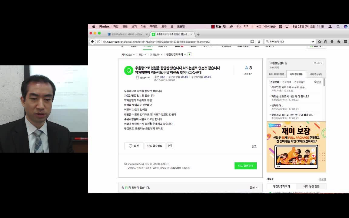 자면서 꿈 속에서도 상담문을 쓰고 있으니 말입니다.