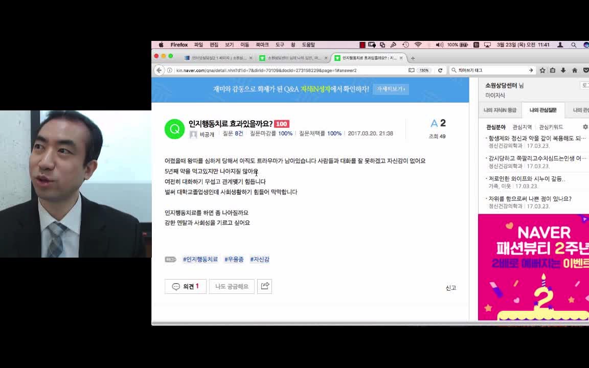 [2017-03-23] 왕따, 인지행동치료 효과 [상담프로그램]