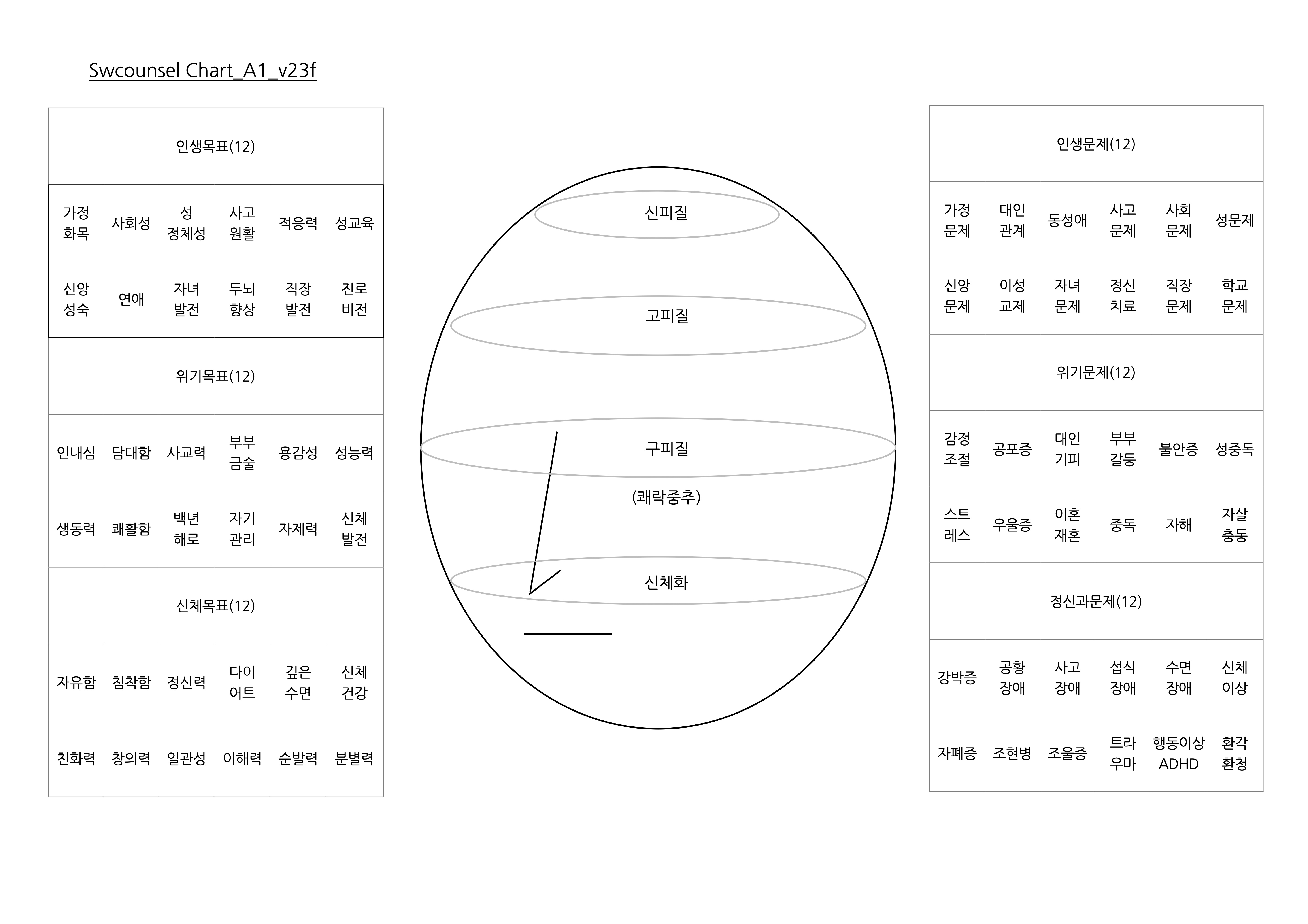 상담챠트: 신피질, 고피질, 구피질의 뇌구조와 마음의 문제 이해 챠트